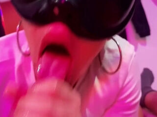 A Milf Was Touching Her Pussy When The Neighbor Knocked On The Door, Invited Him To Her Room, And Started Sucking His Huge Cock