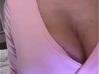 Stepmom in pink caresses her big tits
